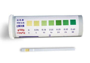 3. 過(guò)氧化值測(cè)試紙的反應(yīng)計(jì)時(shí)視環(huán)境溫度而定,在表中規(guī)定的時(shí)間內(nèi)比色有效。