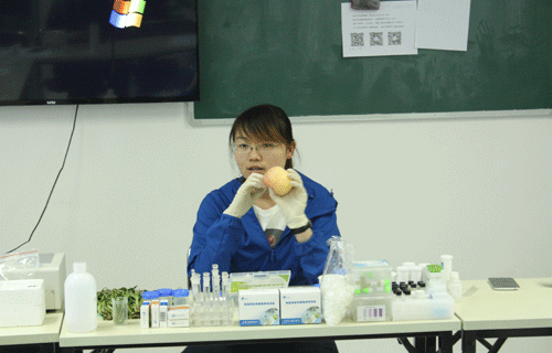 下午由東北農業(yè)大學食品工程專業(yè)碩士董鑫帶領學員動手實操體驗快檢,學員自己動手操作檢測了常見果蔬中的農藥殘留,牛奶中三聚氰胺檢測、泡椒鳳爪雙氧水檢測、冰糖二氧化硫檢測、速凍水餃亞硝酸鹽檢測,食用油脂、地溝油等的快速檢測等,實操課程學員顯現(xiàn)出了飽滿的熱情和認真細心的態(tài)度,課程結束學員還意猶未盡。