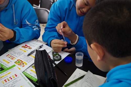 在講授知識的間隙,課程還穿插了三個趣味小實驗讓學生們對所學的知識加深印象。學生們自己動手調配出了“色香味俱全“的“果汁飲料”,并通過實驗檢驗出了冰糖銀耳蓮子中二氧化硫的含量,分辨出了“好油”與地溝油。