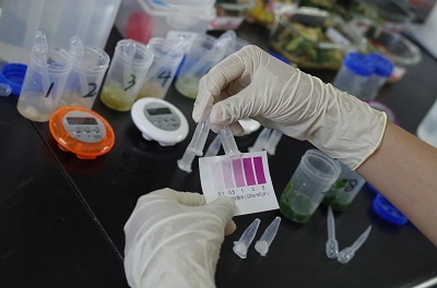北京智云達技術工程師楊老師和趙老師將準備好的樣品分別進行標號,通過智云達自主研發(fā)生產(chǎn)的快速檢測產(chǎn)品:亞硝酸鹽速測管,對樣品進行快速檢測試驗。