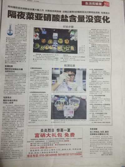 檢測結果:六組對照試驗均無明顯變化,隔夜菜的亞硝酸鹽含量比新炒菜沒有顯著增高,可以食用。北京智云達提醒消費者剩菜最好保存在冰箱等低溫環(huán)境下,不易變質,但也不宜超過兩天,并且不要長時間放置在室溫環(huán)境下,細菌容易滋生,會將硝酸鹽轉化成亞硝酸鹽。