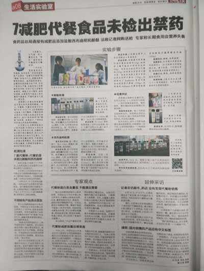 2016年8月18日12:00,北京智云達科技股份有限公司(以下簡稱“北京智云達”)與法制晚報在樂嗨在線直播檢測代餐粉、奶昔中的酚酞和西布曲明。