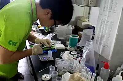 北京智云達技術工程師楊老師和王老師首先對不同樣品通過使用北京智云達自主研發生產的快速檢測產品:SMART-01F 多功能食品安全檢測儀、二氧化硫速測盒,對不同樣品進行甜蜜素與二氧化硫含量的檢測。