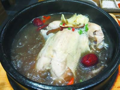 天氣變冷,喝碗熱乎乎的雞湯暖胃又暖心。這兩年流行的參雞湯是源自韓國(guó)的特色名湯,用整只雞制作,雞肚子里填滿糯米以及大棗、板栗、枸杞、高麗參等配料,清爽美味又滋補(bǔ)營(yíng)養(yǎng)。本期,北京商報(bào)記者來(lái)到兩家連鎖參雞湯品牌——輝佐參雞湯和鮮有基參雞湯,體驗(yàn)藥膳美食的獨(dú)特滋味。調(diào)查發(fā)現(xiàn),鮮有基參雞湯的糯米口感硬且沒(méi)有入味,在火候掌握上有待提升。