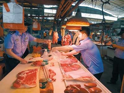 南海區(qū)食品藥品監(jiān)督管理局大瀝分局聯(lián)合大瀝、鹽步派出所,對大瀝鎮(zhèn)各大農貿市場的豬肉檔進行全面的摸底排查,共抽檢豬肉293批次,結果部分批次的豬肉被檢出含有硼砂。9月22日下午,食藥監(jiān)、公安部門聯(lián)合開展收網(wǎng)行動,共出動執(zhí)法人員80多人,突擊檢查涉嫌違法的豬肉檔,在聯(lián)滘市場、岐豐市場(瀝南市場、東秀市場、鐘邊市場、瀝豐市場、瀝表市場、桂江市場、聯(lián)安市場)等9個市場的11處豬肉檔被證實在其銷售的豬肉中添加了硼砂,現(xiàn)場查扣疑似白色硼砂粉末共計7.5KG,抓獲雷某陽、何某萍等13名犯罪嫌疑人。