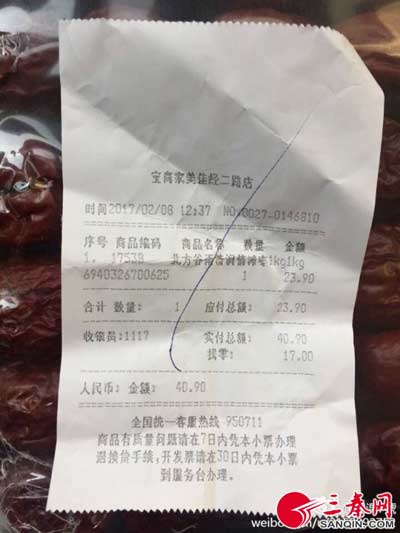 微博網友@淉淉7號在網上投訴稱,同事于2月8日在寶雞家美佳超市經二路店購買了一袋大棗,回去后卻發現里面有很多的蟲子,令人十分惡心。