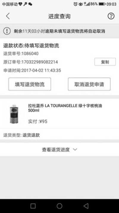 隨后,王女士也表示,網(wǎng)上公布的說明文件除中文說明外,其余證明資料均字跡不清,希望蜜芽方面能提供清晰的說明原件。4月2日,蜜芽告知王女士,由于一些原因,無法提供原件。同時(shí)蜜芽客服也表示,作為最終的處理結(jié)果,王女士除了能無條件退貨退款外,蜜芽網(wǎng)還將贈(zèng)送王女士一張50元的優(yōu)惠券。王女士在電話中表示,沒有一個(gè)明確的解釋,自己是不會(huì)認(rèn)可蜜芽的處理結(jié)果的。4月2日下午,王女士的蜜芽賬戶中突然多了50元的優(yōu)惠券,并且自己購(gòu)買核桃油的訂單狀態(tài)自動(dòng)變成了“退貨退款”。