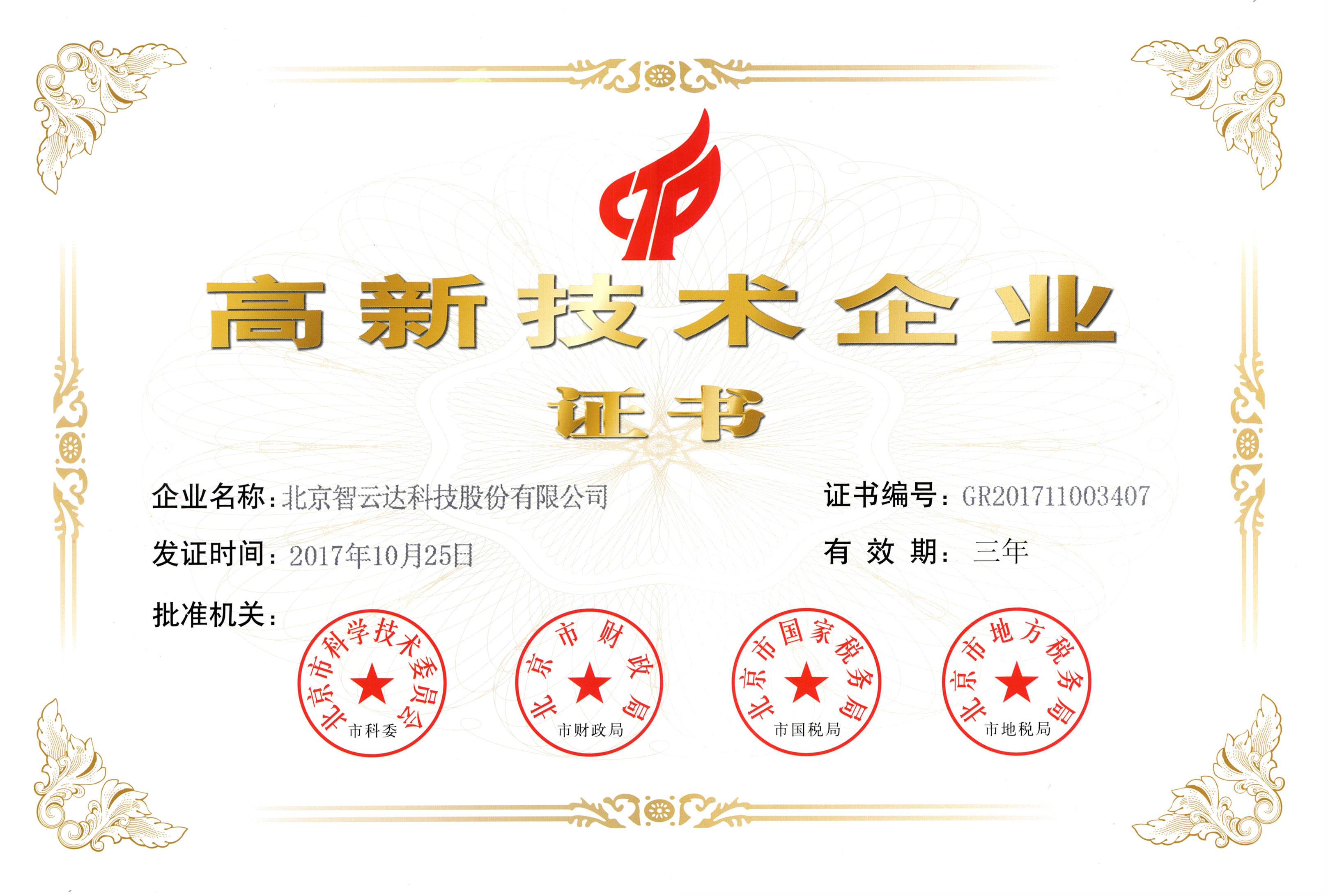 高新技術(shù)企業(yè)證書