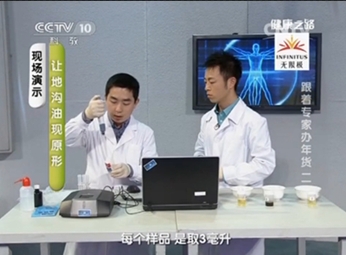 地溝油檢測(cè)儀亮相四川 記者舀地溝油進(jìn)行試驗(yàn)