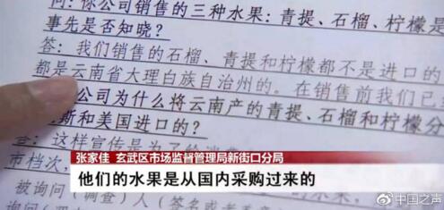 經過市場監(jiān)管部門調查核實,這些水果并非進口,而是國產的。南京市玄武區(qū)市場監(jiān)管局新街口分局張家佳告訴記者:“當時我局在超市發(fā)現(xiàn)這個來源不明的水果的時候,立即要求下架處理,并且供貨商也承認,他們的水果是國內采購過來的,說他們的水果來自云南。我們以涉嫌虛假宣傳進行立案調查。”