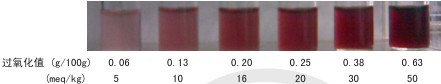 利用食用油氧化所生成的過氧化物與檢測試劑發生顯色反應,食用油過氧化值越高,顏色越深。
