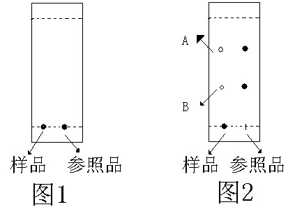 使用紫外燈在陰暗環(huán)境下近距離照射的硅膠板如圖2,若位置A或B有點存在即說明有磺脲類物質(除A和B 位置之外,其他位置的點與本次測試無關)。
