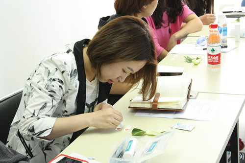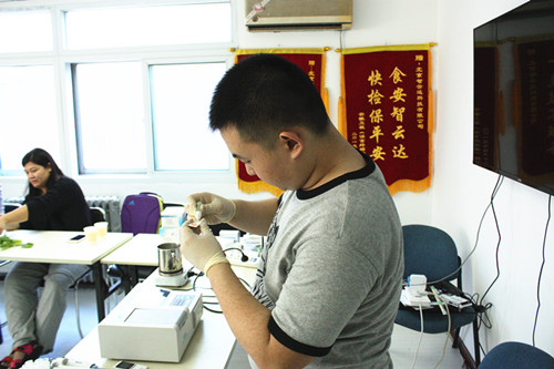 下午由河北農(nóng)業(yè)大學食品質(zhì)量與安全專業(yè)于鳴訓(xùn)講師帶領(lǐng)學員自己動手操作檢測了油菜中的農(nóng)藥殘留,牛奶中三聚氰胺檢測、枸杞二氧化硫檢測、亞硝酸鹽檢測,地溝油檢測等。學員熱情度很高,課程結(jié)束了還意猶未盡,在輕松的學習氛圍中進一步了解快檢,應(yīng)用快檢。