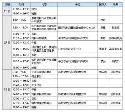 為幫助企業深入學習理解飼料法律法規,了解飼料行業監督檢查情況,使飼料行業從業者規范飼料生產、經營行為,強化管理,滿足飼料企業對新法規和檢測實驗室管理的需求,解決目前飼料企業工作中遇到的疑難問題,北京智云達科技股份有限公司將于2018 年12 月26 日~28 日在北京舉辦“飼料行業法律法規培訓班”?,F將有關事宜通知如下: