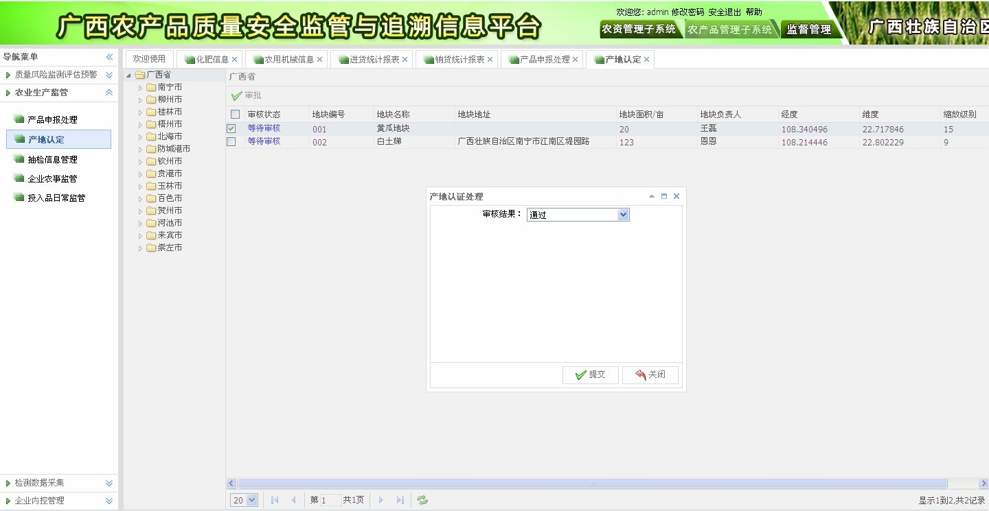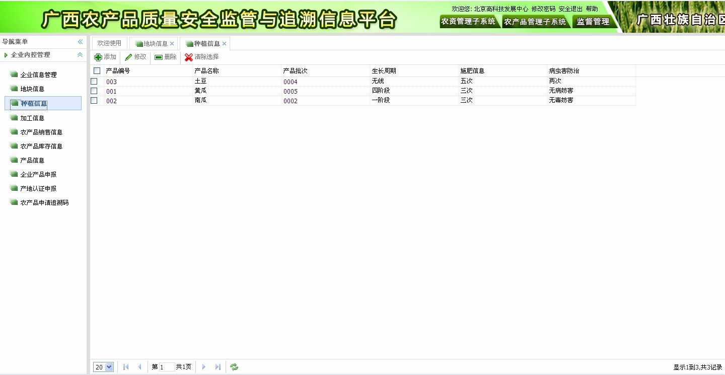 ? 企業(yè)信息管理:基本資質(zhì)、產(chǎn)地環(huán)境、生產(chǎn)基地、管理制度等;