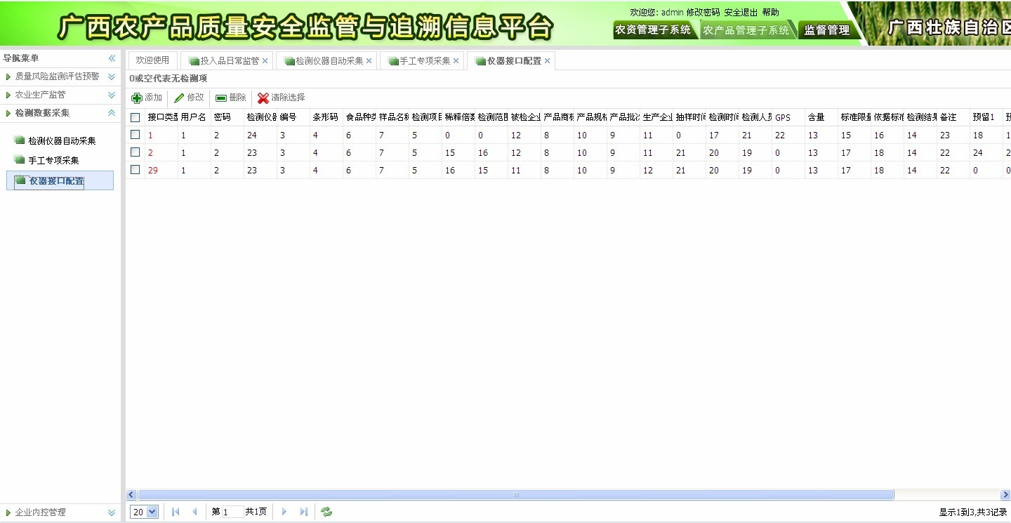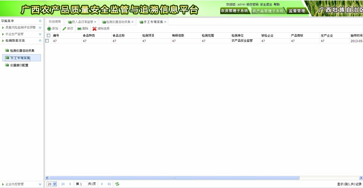 無需自動采集的檢測數(shù)據(jù)通過該版塊手動錄入采集結(jié)果。提供增刪改功能,便于操作。如圖3-2所示